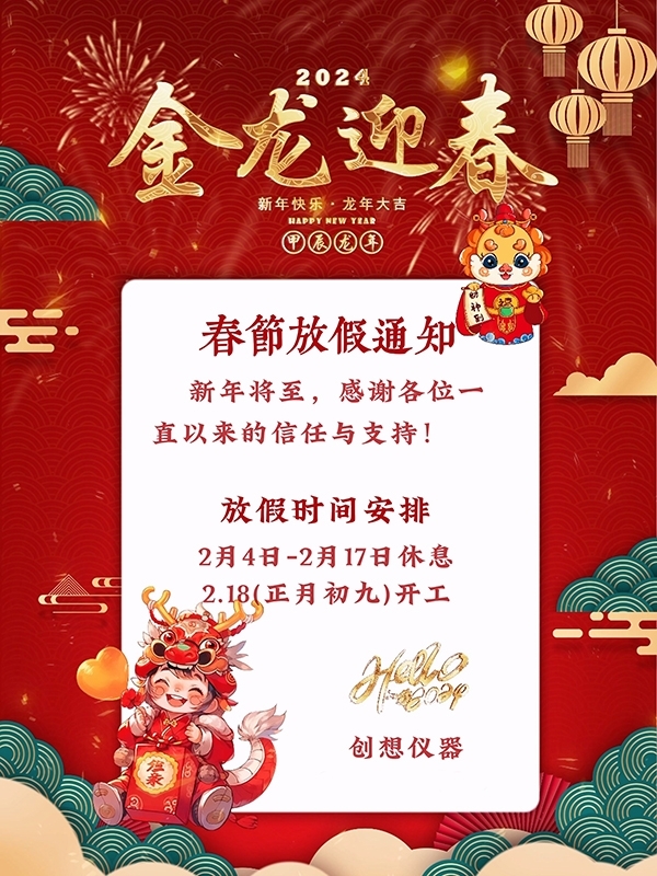 2024年新春佳節,創想儀器對今年的春節放假作以下安排: